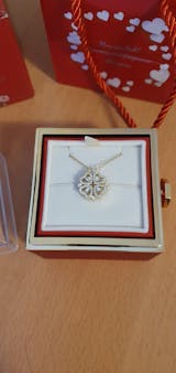 Le pendentif et la chaîne sont de bonne qualité, et c'est incroyable de voir comment ils s'ouvrent et se ferment. Ils sont arrivés à temps. C'était un joli cadeau. J'ai dû contacter le service client pour une question de suivi, et le service était excellent et très utile. Je suis très satisfaite de mon achat.
