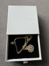 Le collier est arrivé à temps. L'emballage était soigné. Il correspond exactement à la description. Je l'adore et je rachèterais si nécessaire. La chaîne est suffisamment épaisse pour ne pas se casser facilement. Le trèfle est petit mais c'était exactement la taille que je cherchais.