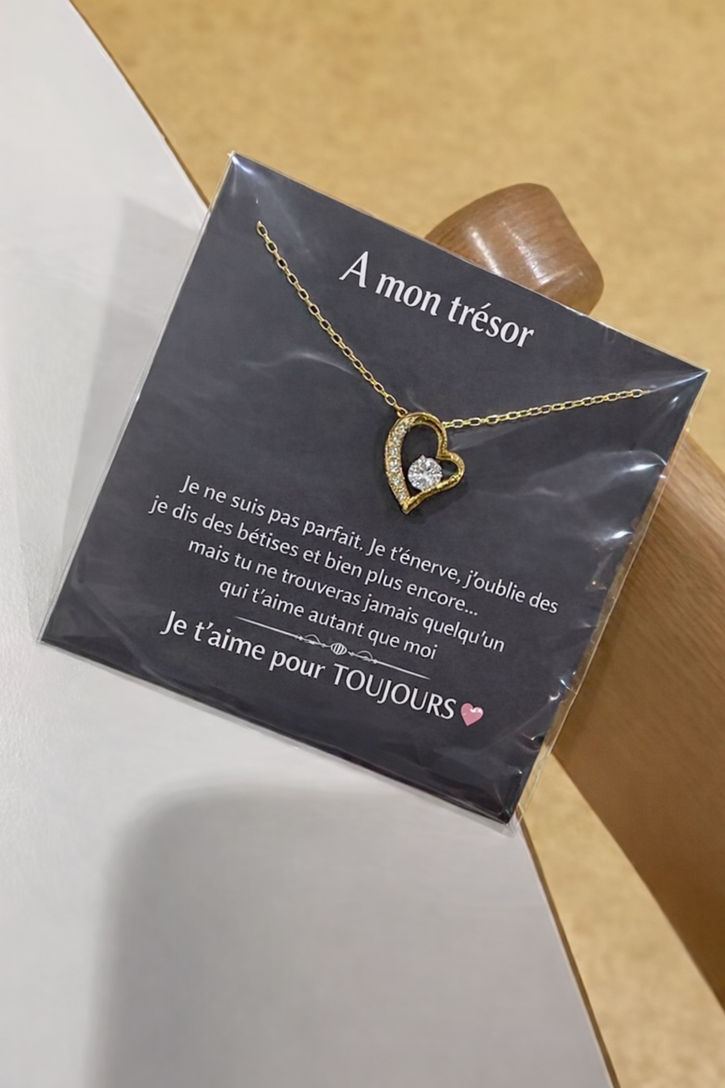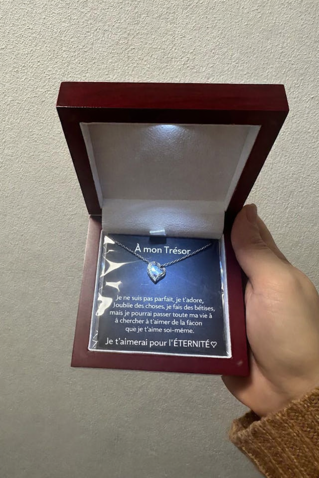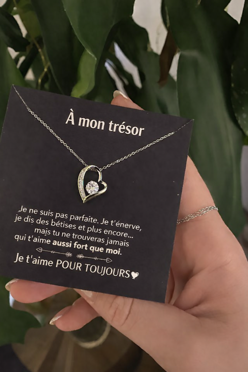 Collier en or blanc 14k en forme de cœur - À mon trésor