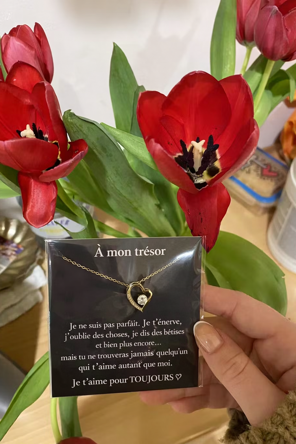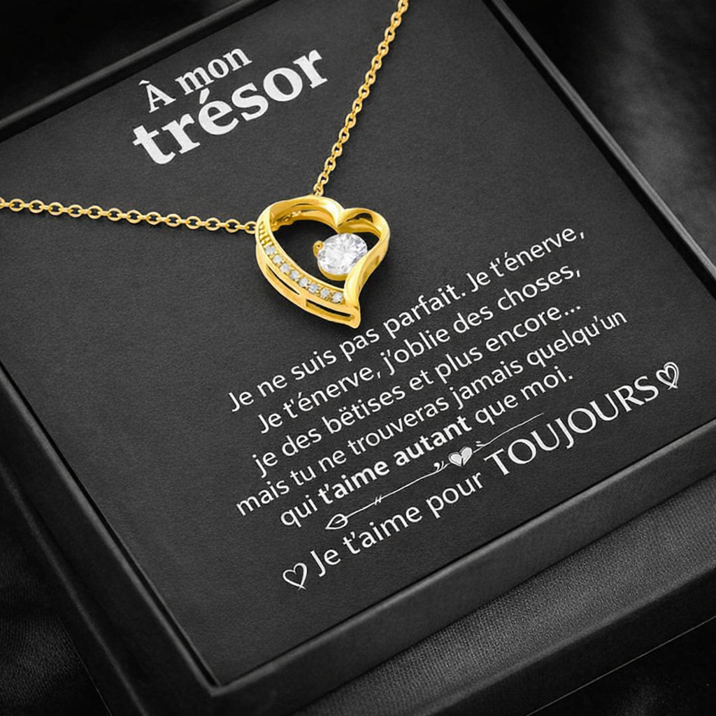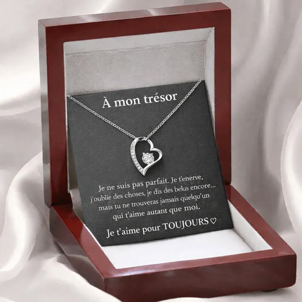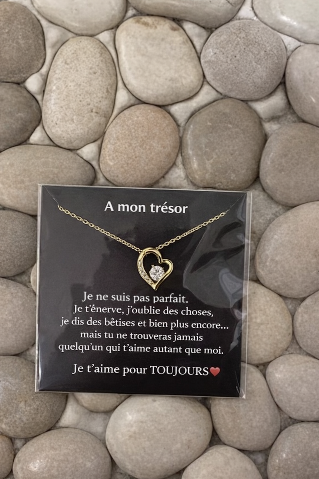 Collier en or blanc 14k en forme de cœur - À mon trésor